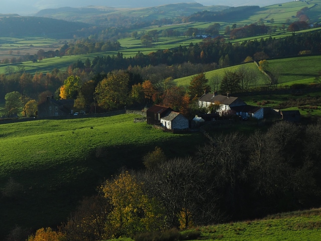 After taking numerous photos of the waterfall we retraced our steps back to the car park and crossed over the beck by the nearby footbridge to commence the route proper. Climbing up above the beck we passed through some lovely autumn woodland before entering the open access moorland of Friar House Allotment.