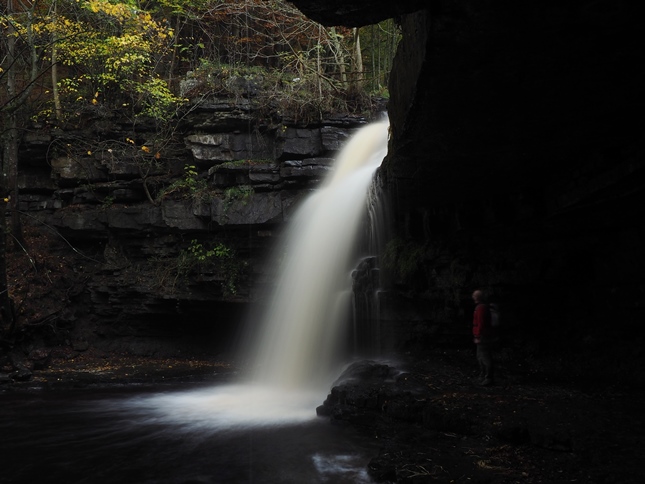 It was a murky morning in Teesdale as we arrived at the visitor centre car park. For once I wasn't disappointed by the cloud as it actually makes it easier to get a longer exposure when taking photos of waterfalls. To start then we followed the path on the east bank of Bow Lee Beck to visit Gibson's Cave and Summerhill Force. Along the way we passed a fine waterfall which as far as I know doesn't have a name.