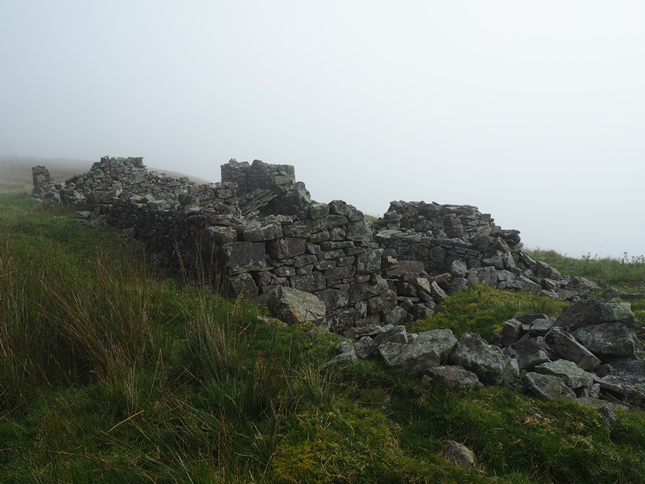 Climbing a bit higher up we reached High Shop, the ruins of a building that once provided accommodation to miners high up on the flanks of the fell. At this point the cloud rolled back in over the top of us and for the next couple of miles visibility was once again restricted.