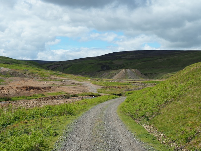 This was a lovely section of the walk and the easiest underfoot. The broad track led me deeper into the valley leading eventually, after fording the beck, to spoil heaps and some old mine workings. Just past a couple of old mine buildings, where the track re-crosses the beck at a bridge I decided to stop for some lunch. I was just contemplating how quiet and peaceful it was when a steady stream of walkers appeared, walking towards me down the valley before taking the path opposite up Wire Gill. It turned out that they were all doing the 30-mile Durham Dales Challenge and I'd probably picked the one day of the year that I would have seen someone else up there.