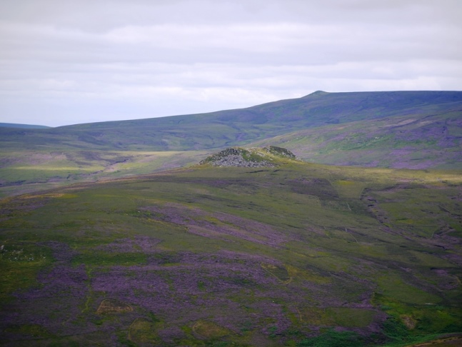 Perhaps confusingly the higher of the two, at 543m above sea level, is called Little Standrop, whilst the lower at 535m is called Great Standrop. In reality, with a prominence of 22m, Great Standrop is undoubtedly the greater of the two and, when viewing the fell from a distance, stands out more than Little Standrop. Great Standrop itself actually consists of two connected mounds of rock and heather which, to me at least, look like a pair of pert breasts emerging out of the surrounding moor.