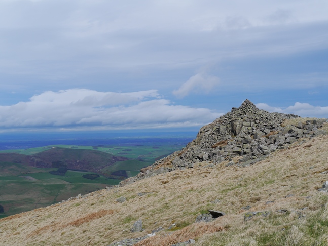 The skies darkened again as I made my way on to Hare Law but as I sat in the shelter of the large cairn marking the top the sun broke through again quite beautifully. The forecast for the day had been one of cloud so this was a rare example of the weather being better than forecast and this coupled with the quite fantastic views across the valley towards The Schil, Black Hag and the hillfort on Great Hetha put me in particularly high spirits.