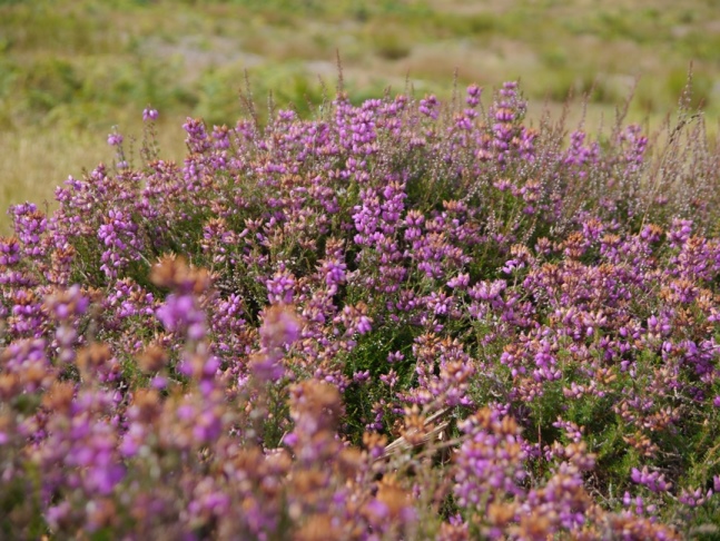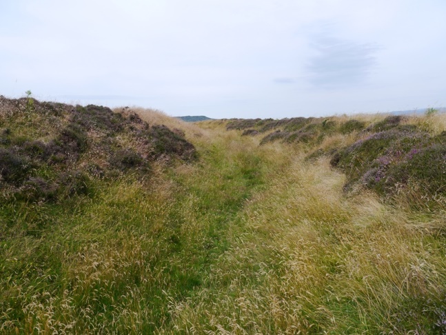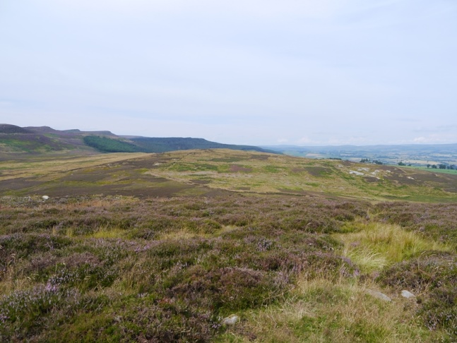 Having wandered around a number of the clear paths on Lordenshaw Hill I wanted to try and visit the trig point on neighbouring Garleigh Hill. Although the latter was very close there did not seem to be a clear path to the top and so to get there required a bit of heather bashing and as a result I had to give Rhiannon a piggy back over some of the rougher ground.