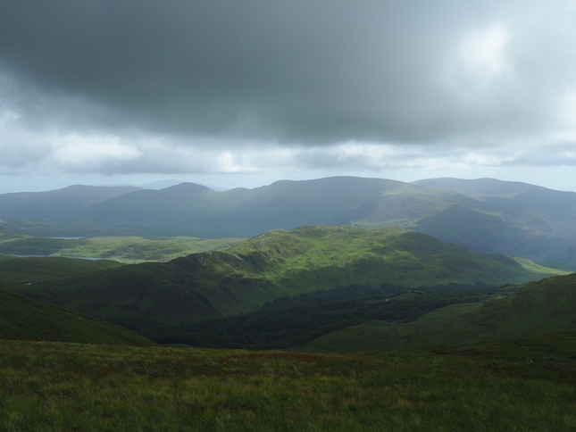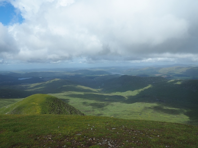 From Benyellary a clear path led me across the brilliantly named Neive of the Spit for an easily graded climb to the top of Merrick. My arrival at the highest point in the southern Scotland was greeted by bright patches of sunshine and some quite stunning views. Merrick is credited with having one of the longest sightlines of any hill in Britain. Whilst conditions restricted the really long distance views I didn't care as I was totally absorbed by the hills, forests and lochs of Galloway.