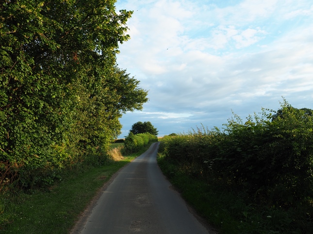 After walking along the lakeshore from Sweet Bits Farm to the northern end of the lake I left the lakeshore behind to join a path through trees to arrive on Hazelheads Lane. This soon turned into a nice tree fringed track which I then left to take the bridleway leading to Hopewell House, one of a number of farms that make up the small community called Hay-a-Park. For most of the next stage of the route along Hay-a-Park Lane I was walking alongside fields of wheat which looked even more golden in the evening sunshine.