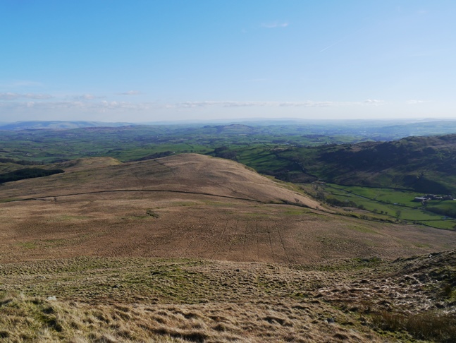 From Swinklebank Crag I next walked over another unnamed top at the head of Bannisdale before swinging round to head towards Long Crag. For most of the rest of the walk the view was dominated by the nearby Shap Fells and the Howgill Fells beyond. With the hills of the Yorkshire Dales and North Pennines set even further back it looked like the hills went on forever. The only sounds to be heard were the gentle breeze and the skylarks singing in the grass. All in all it was utterly entrancing.