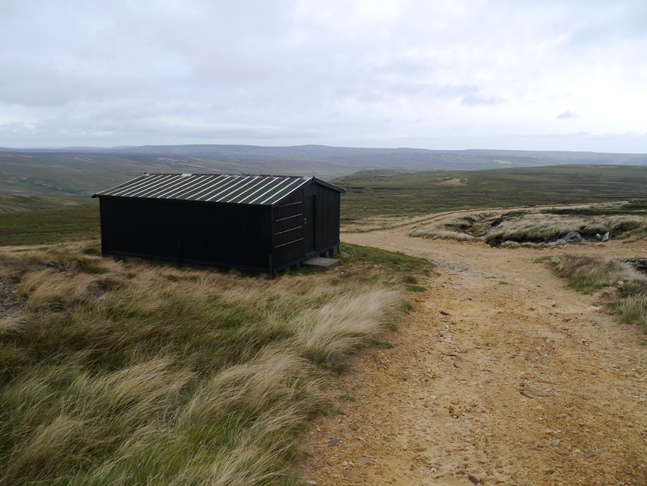 The climb was steady but as we got higher the wind became increasingly strong and twice we took advantage of the shelter provided by a couple of shooting houses en-route. The lower house was built of stone, the higher one was built of timber and was plentifully stocked with cans of Fanta and Fosters. We resisted the temptation to help ourselves and it has to be said I'm not entirely sure that taking men up on to a moor with shotguns and plying them with lager is a good idea!