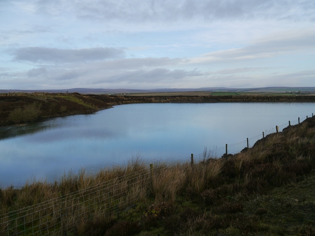 From North Moor Road I set off across Kex Gill Moor, the path on the map proving to be rather elusive. Rather than take the shortest route to the Dovestones I first made my way across the pathless moor to visit the small tarn marked near Foulcauseway Slack. The tarn doesn't appear to have a name but I wonder if it is Kex Gill Tarn. This is marked on the map a quarter of a mile south but as there is no tarn there I think the name may be in the wrong place on the map. It was a pleasant spot - possibly less so for grouse considering the line of grouse butts along one side of the tarn.