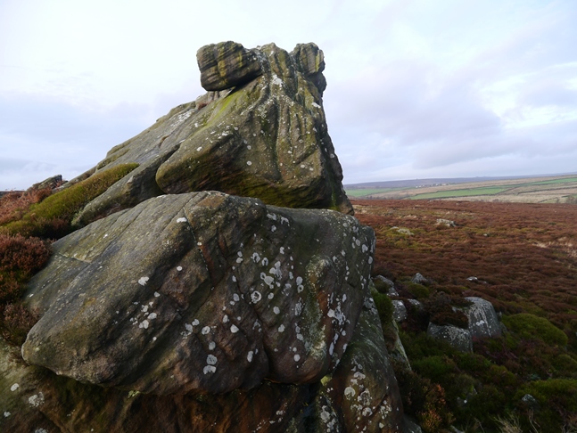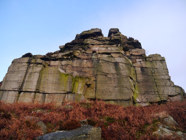 Rather than taking the usual path contouring through the bracken I dropped down to the reedy Hall Beck so that I could view Dovestones from below. After a bit of a tussle with the dead bracken I scrambled up alongside the rocks to enjoy the views from what is a major landmark on this stretch of the Harrogate to Skipton road.