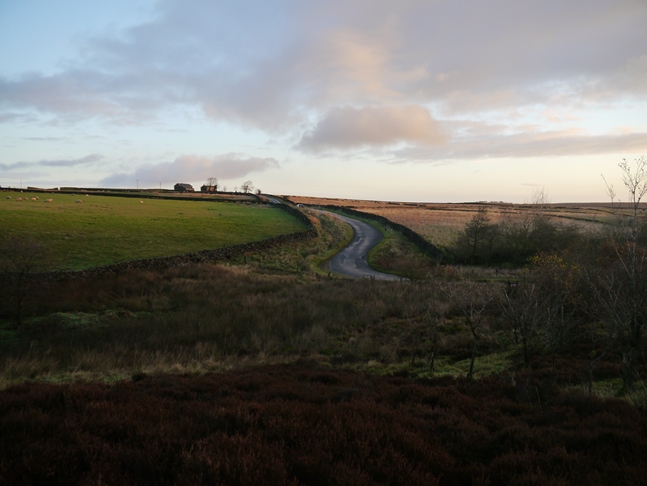 Using the power of Google Street View I managed to find room to park a car on North Moor Road which meant that unlike previous visits to this area I didn't have to start at the parking area at the top of Fewston Reservoir. An unexpected advantage of the spot I'd selected to park the car, combined with setting off fairly early, was that I arrived just in time to see the sun rise gloriously over Hall Moor directly above Brandrith Crags.