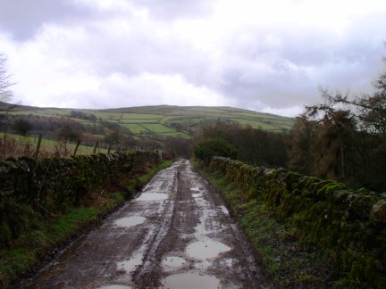 The rain did indeed stop about midday and there was even some blue sky about but unfortunately the promise of some sunshine was never fulfilled. The old tram way was steep and in places muddy but this was offset by some decent views looking back to Pateley Bridge. However at some point along there I seem to have lost my Nidderdale walking book.