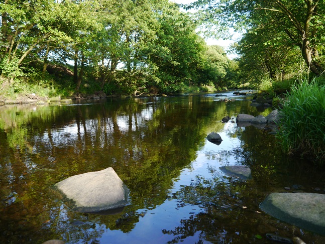 The initial path was quite uneven in places with the surrounding vegetation threatening to overgrow it. However, by the time the riverside path had met the embankment of the old Harrogate - Pateley Bridge railway to the south of Low Hall Wood not only did the path begin to improve but so did the views of the river itself.