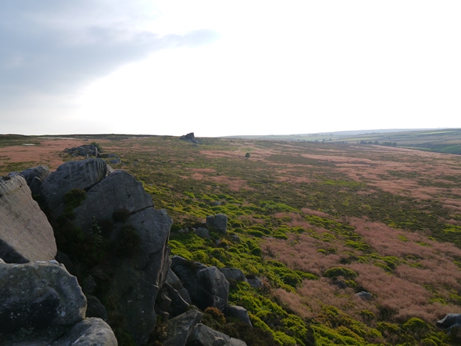 Apart from a few faint trods the following exploration of Hall Moor was largely pathless but it was worth a bit of heather bashing to 'discover' the fine set of outcrops which have the collective name of Brandrith Crags. There are three main outcrops with the two outer ones being the most impressive and which offer great opportunities for a bit of casual scrambling. Whilst the OS map records a 'Rocking Stone' none of the rocks I saw seemed to obviously fit the description so I was unable to identify which one it was.