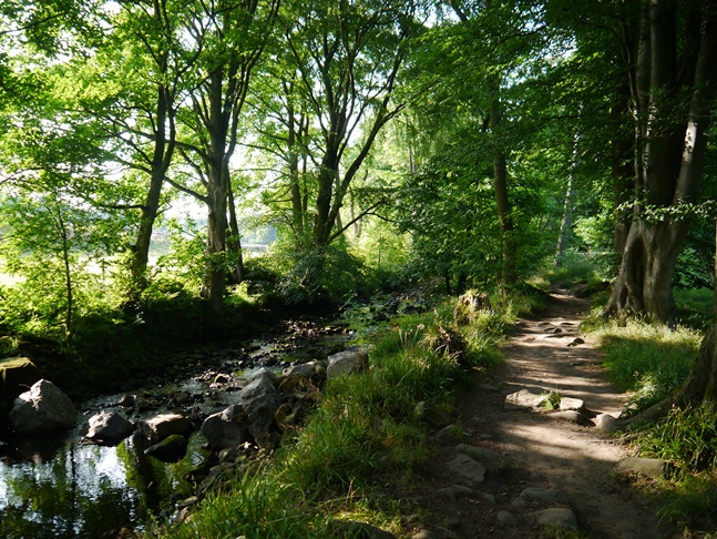 Once again I took advantage of the long summer days to do this walk after work. Parking at the Hopper Lane car park at Fewston Reservoir I crossed the A59 and for the next couple of miles I enjoyed an idyllic ramble upstream with the River Washburn on my left. Without walking as far as the impressive Thruscross Dam I crossed a footbridge and double backed along a track leading to Nethernooks Bridge over Redshaw Gill Beck. Over the bridge I climbed a faint path through the trees and bracken to eventually emerge into a field from where I crossed into the open access land of Hall Moor.