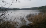 Just above the quarry was a nice reed fringed tarn that I had visited many years ago on my last visit to Scar House Reservoir. From the tarn I set off north climbing gradually up the pathless moor passing the rash of scattered gritstone boulders called the Gladstones. Above the Gladstones I reached the broad, almost dead-flat, summit area of Dead Man's Hill. The 546m spot height is unmarked and so the exact highest point, if there is such a thing on Dead Man's Hill, is almost impossible to identify. Instead I settled for traversing the top of the moor heading in the direction of the boundary fence.