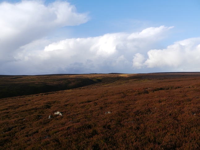 After a short way I left the road to follow a super track that led up on to the moor, crossing Wandley Gill on the way. Just before reaching Black Dike the track petered out into a thin trod that accesses some numbered marker posts (presumably grouse shooting posts). It was here that I had the first of the day's hail showers. It soon cleared but as I reached the stone shelter above the dike it was soon back. The stone shelter is marked on the map but has clearly seen better days and having stood up there in the hail I can confirm that it does not, in fact, offer much shelter at all.