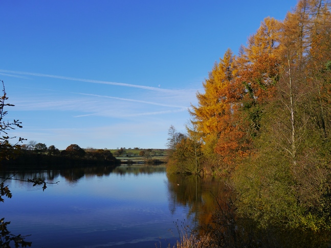 Having parked up at the car park just off the A59 I set off to do a clockwise circuit of the reservoir. It was a beautiful November morning with the still reflective waters contrasting nicely with the increasingly bright blue sky and the early morning sunshine.