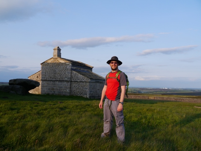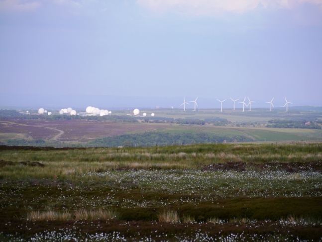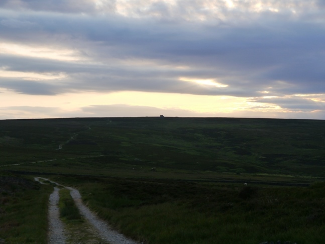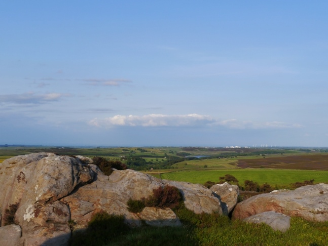 Rocking Hall proved to be not one but two separate buildings either side of two large stones collectively known as Rocking Stone and which presumably lent its name both to the Hall and the surrounding moor. The view from Rocking Hall was again extensive and even included, beyond Ilkley Moor, the prominent windfarm on Ovenden Moor in Bronte Country. By this time it was past 8pm so I wolfed down a late meal and set off at a fast pace on a wide track that led me all the way to Spittle Ings House and ultimately on to the road which I followed back to the start.