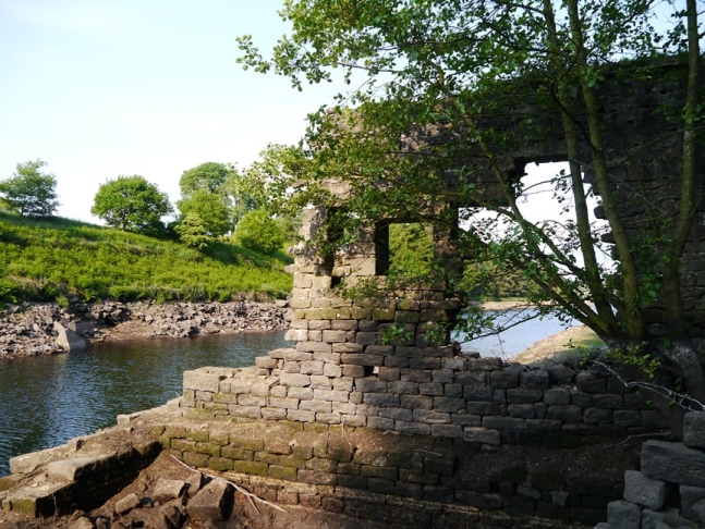 Starting from the car park above the impressive Thruscross dam I followed the path alongside the western edge of the reservoir. It was a most pleasant mile or so of walking and brought back nice memories of family picnics when I was young. Towards the end of the path I came across the ruins of a building from the village of West End most of which lies submerged under the waters of the reservoir.