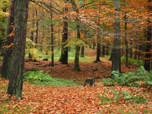 After taking numerous photos of the waterfall we retraced our steps back to the car park and crossed over the beck by the nearby footbridge to commence the route proper. Climbing up above the beck we passed through some lovely autumn woodland before entering the open access moorland of Friar House Allotment.