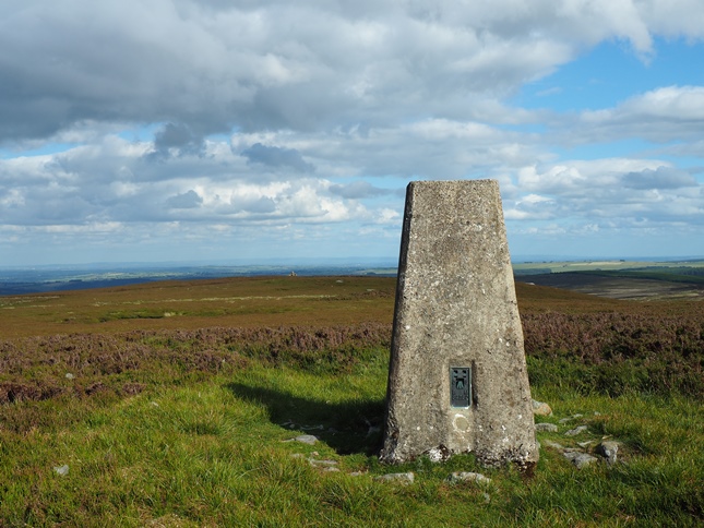From Black Force I next had to negotiate pathless slopes of bracken, heather and moorland grass. Eventually, and somewhat wearily, I arrived at the fence running along the top of Harnisha Hill and which also marks the Tees - Wear watershed. A short way along the fence I came to the stone built trig point on Harnisha Hill, or Raven Seat as it is called on the OS trig database. The views, which very much favoured Weardale to the north, were excellent with the northern Dales tops in view along with the Cleveland Hills south of industrial Teeside.