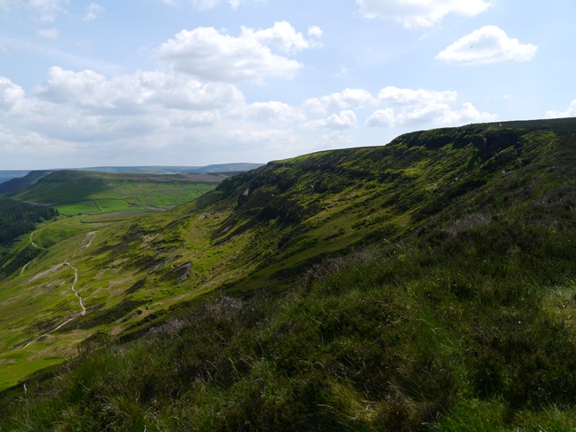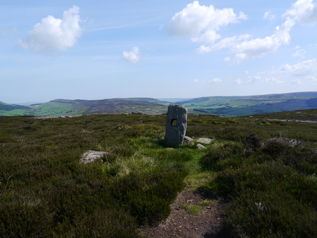 Starting from Chop Gate I immediately began the climb up on to Noon Hill, the highest point of West Bilsdale Moor, and the first of no less than six hills on my route. This was a top I'd first visited one evening the previous summer. The climb up via Trennet proved to be easy enough with some lovely views of upper Bilsdale. After visiting the boundary stones on Cock Howe and Green Howe I continued north along a track to drop down on to Barker's Ridge. This part of the route was unfamiliar to me and a real highlight of the walk was the moment when the full length of Scugdale appeared in view ahead of me.