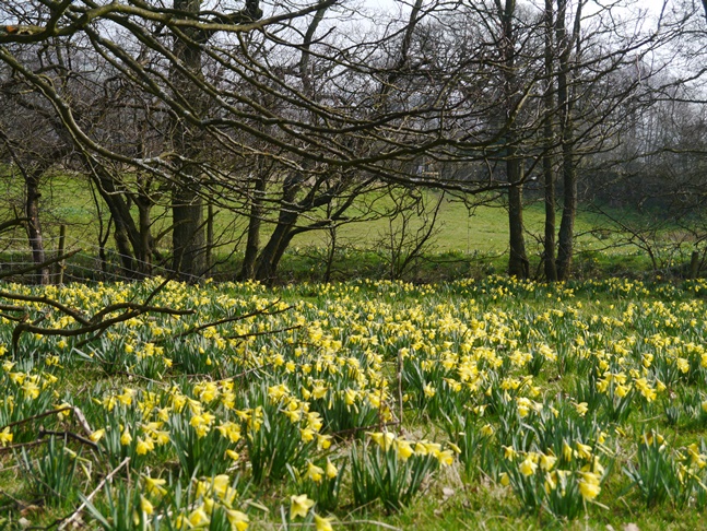 Although they were clearly not all flowering there were still fewer daffodils than I expected and when I arrived at Low Mill I got talking to someone from the North York Moors National Park who told me that there had not been as many the last couple of years and that currently the best places to see them were in the churchyard of Church Houses and much further south in the valley near Birch Hagg House. Unfortunately both of these were well off my route (maybe I'll check them out next year).