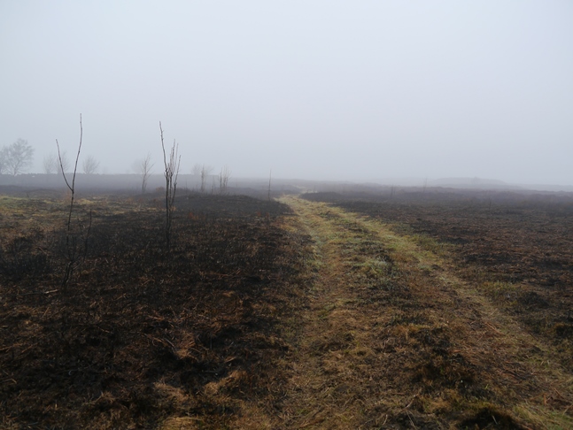 Thanks to some fairly clear tracks navigation was simple despite the fog. While it is always preferable to be able to enjoy a view while striding along a nice moorland track there is something uniquely atmospheric about being alone on a moor in such conditions. Of course I was not really alone and this early part of the walk was accompanied to a soundtrack of moorland birds with curlew, lapwings, pipits, skylarks, plovers and the ubiquitous grouse all making a contribution.