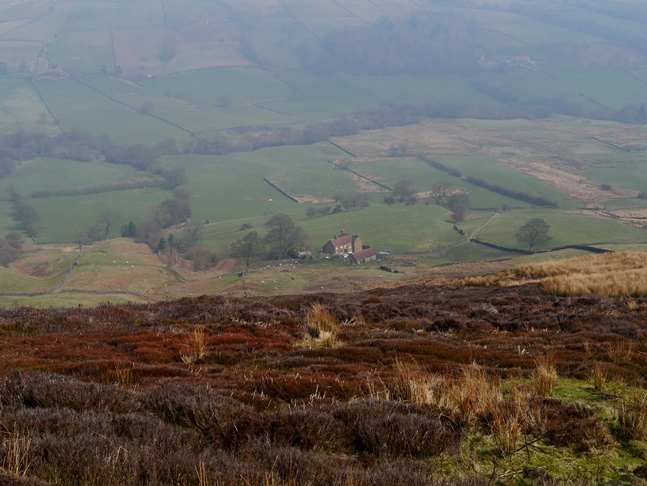 From the road above Low Mill I took a path leading up through a small plantation to join a path slanting back up on to the moor, passing along the way the remains of a small quarry and a particularly well built cairn that does not appear on the map. Once again, had it not been for the thick haze I would have had some wonderful views of Farndale. Once back up on the moor it was then a short walk to rejoin the track I'd started on and return to the car.