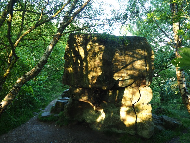 Starting from the car park on Birchover Road, opposite Birchover Stone Ltd, it was a short walk north along the road to join the public footpath accessing Stanton Moor. Passing beneath a large dead tree above the path I soon arrived on the moor by the Cork Stone, the first of many interesting features packed in to the relatively small space of Stanton Moor.