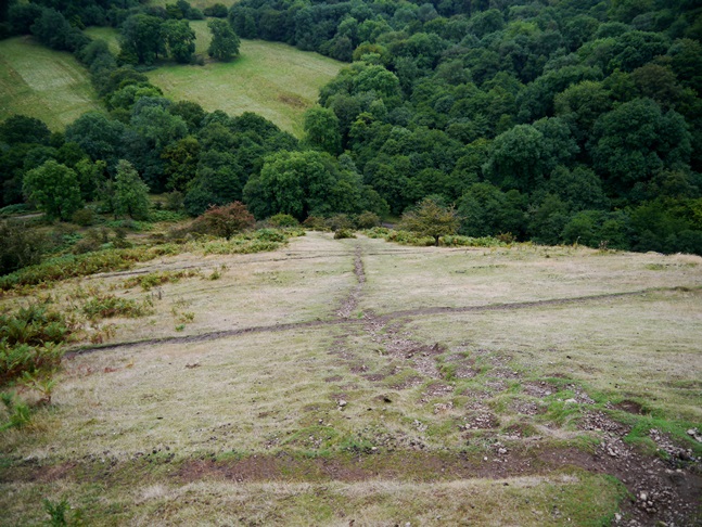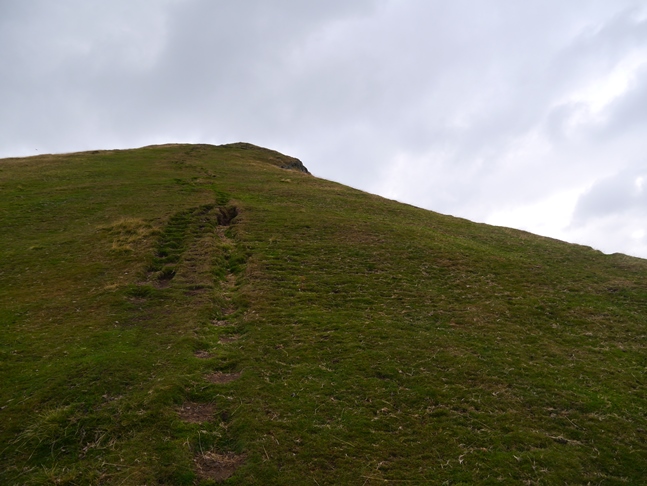 After a short detour to the top of Little Caradoc I commenced the steep but enjoyable pull on to Caer Caradoc. The name of the hill links it to Caradoc (Caractacus) who led the British tribe of the Cornovii against the Roman invaders in the first century AD. It is one of two such named hills in Shropshire and is also one of the possible sites of Caractacus's eventual defeat. An Iron Age fort once stood proud on the summit of the hill and and towards the end of the steep section of the climb I crossed over what was clearly once part of the outer bank of the hillfort.