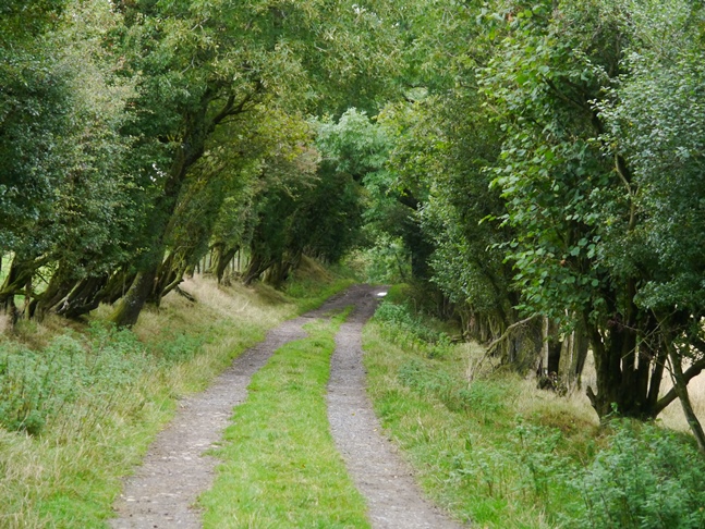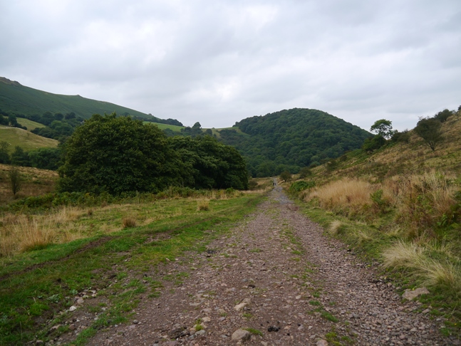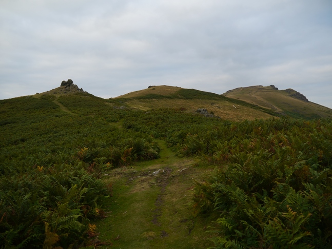 After crossing a stream I followed a thin path to join a track which was the old road to Cardington. The track climbed gradually along the flanks of Caer caradoc and provided good views across to High Bowdler Hill and Willstone Hill. High above the path on my left the dramatic rocky outcrops crowning the top of Caer Caradoc increased my sense of excitement.