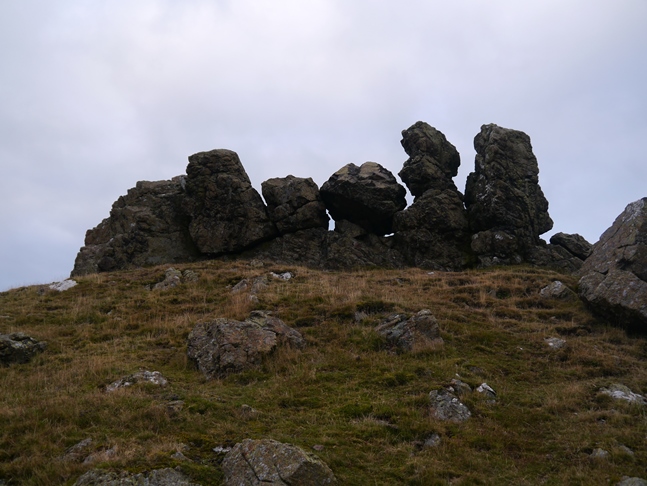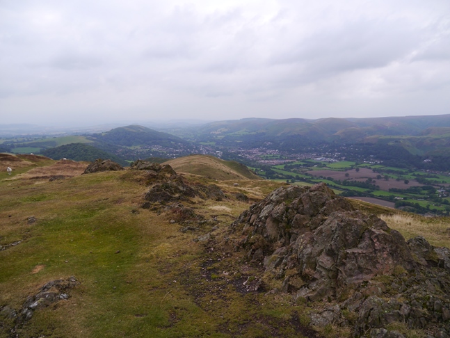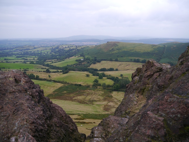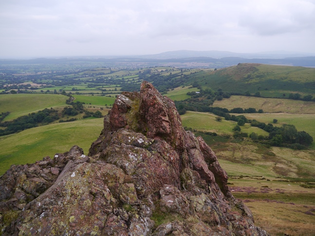 Regardless of any historical associations it has Caer Caradoc is a fantastic hill. Not only is it shapely and steep-sided but the summit area is a fascinating place with some fine outcrops of volcanic rock, the best of which are to be found to the south-west of the summit overlooking the track I'd walked up earlier in the walk. Despite the overcast conditions the views were also excellent and included almost all the major hills in Shropshire.