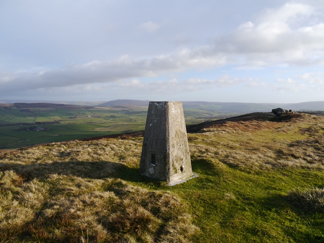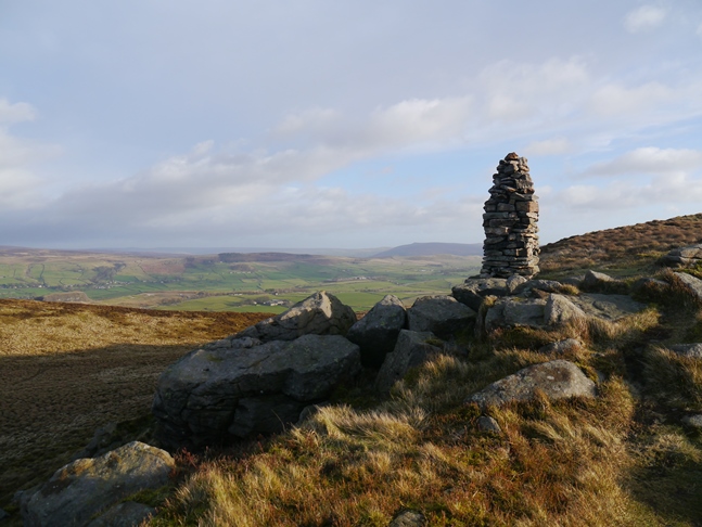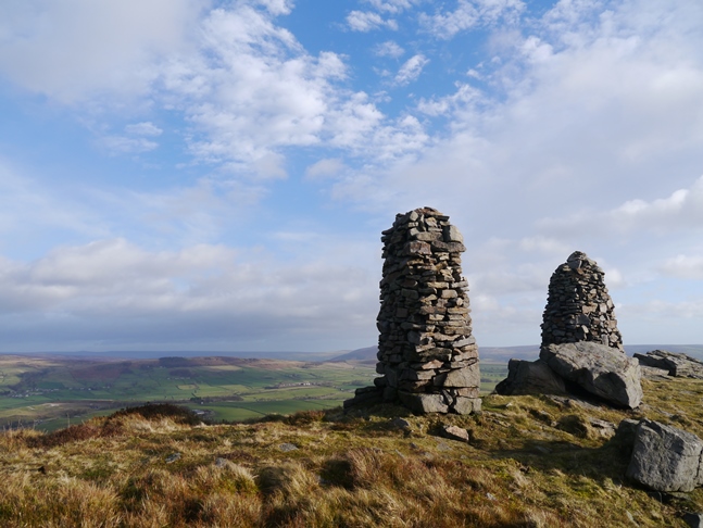 Although it is only a modest 373m in height Skipton Moor is one of my favourite summits in the South Pennines. The summit sits on the highest of a number of prominent humps on the moor. In addition to the trig point the summit area is also adorned with three cairns, one standing a 100 yards or so west of the trig and two large twin cairns just to the east of the trig. These twin cairns are quite prominent and can be seen when travelling along the A59 into Skipton. There are also a scattering of rocks and one small outcrop that juts out from the moor.
