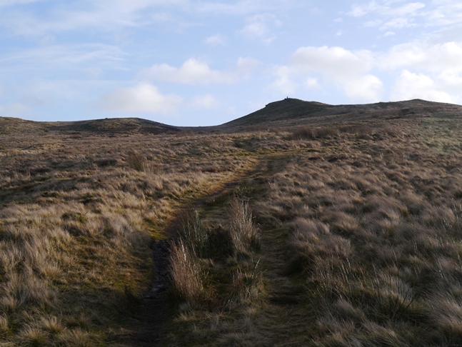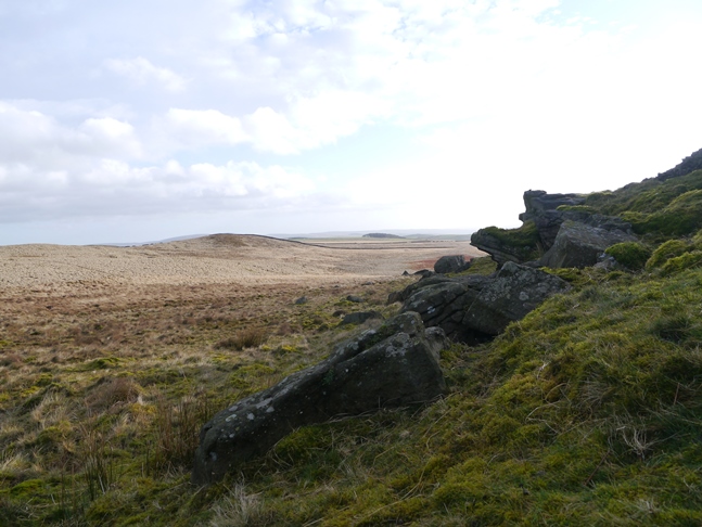 From the top I set off south-west towards Standard and Standard Crag before following a faint path eastwards to the north of a wall across the area marked as Skipton Pits. After crossing one juicy bog the path finally disappeared into a reedy marsh at grid reference SE024502. Unable to find either of the two boundary stones marked on the map thereabouts I then set off north across some particularly tussocky moor to reach Nor Hill.