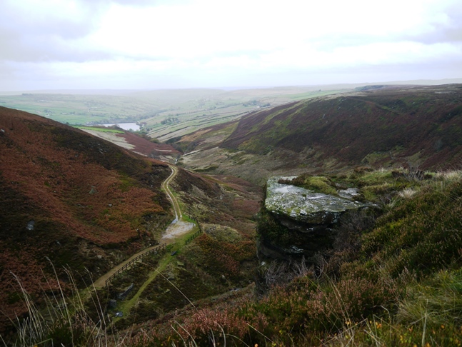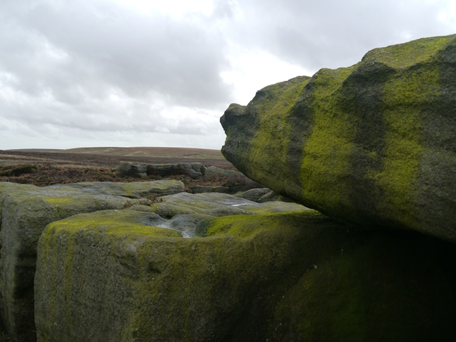 The Alcomden Stones are one of those seemingly random collections of gritstone rocks that are so characteristic of the southern half of the Pennines. I sat and ate my lunch in the shelter of the highest of the stones and whilst contemplating my surroundings arrived at the (somewhat heretical) conclusion that I preferred the bleak beauty of the Pennines to the more obvious charms of the Lake District.