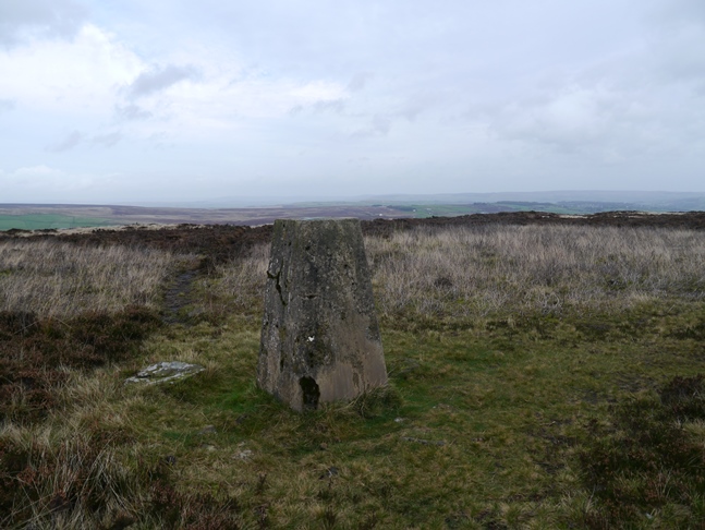 From the Lad on Crow Hill the path quickly faded as I neared the top of Crow Hill. The summit itself was unmarked; with moorland stretching in all directions it felt very remote. Boulsworth Hill and Pendle were both easily identifiable though unfortunately the cloudy conditions obscured the view northwards towards the Yorkshire Dales.