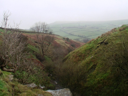 2. Looking along Lumb Head Beck to the shadowy outline of Earl's Crag