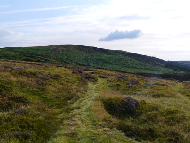 Having climbed up to the rim of crags I then set off across the moor using a thin path that ran pretty much in parallel to the Dales Way Link which it later joined below the boundary stone marked as the Lanshaw Lad. From the Lanshaw Lad I did a loop to visit the trig point at the summit of the moor and which on this occasion was covered in flies. Indeed there was not much of a breeze and on this section I felt like I was a moving feast for the local insect population.