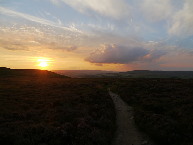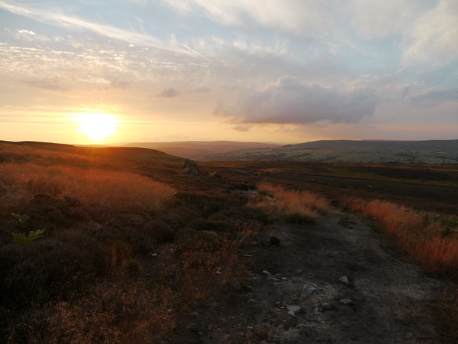 By this time the sun was beginning to set and from Green Crag I enjoyed the most glorious descent with the setting sun ahead of me casting the last golden rays of sunshine over the purpling heather. Without doubt this twenty minutes or so was one of the highlights of the year so far for me and was a wonderful way to finish what had been another hugely enjoyable ramble over Ilkley Moor.