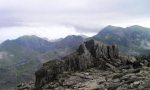 The climb to the north top was a good one with some rocky moments and the unusual assistance of some stone steps next to an old mine rail track. The north top is quite exposed but as with all three summits on the walk the views were first rate.