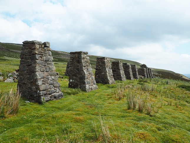 After less than a mile of easy walking we arrived at the site of the Old Gang Smelt Mill. One of the most substantial remains of the Swaledale's lead mining heritage, the Old Gang complex is quite fascinating and for students of industrial archaeology a must. After pottering about a bit in the main complex I also took a detour a bit further along the path up to a series of stone columns, apparently the remains of an old peat store, but which today look like a row of giant stone trig columns. A bit further along I then took a careful look inside one of the mining levels.