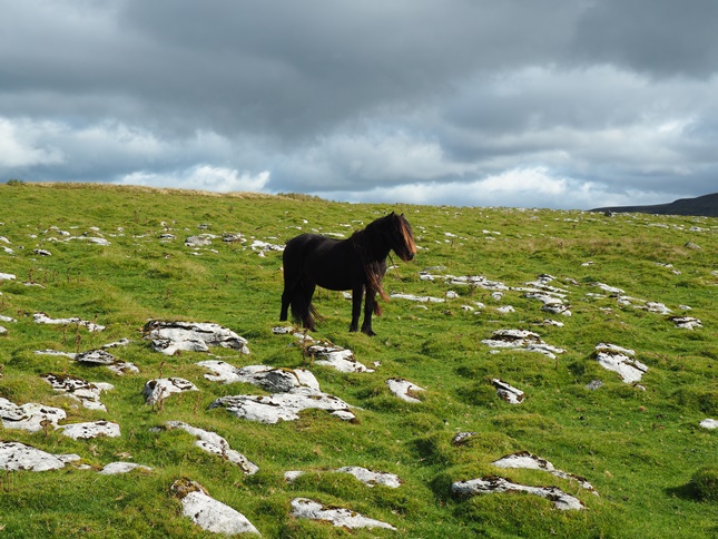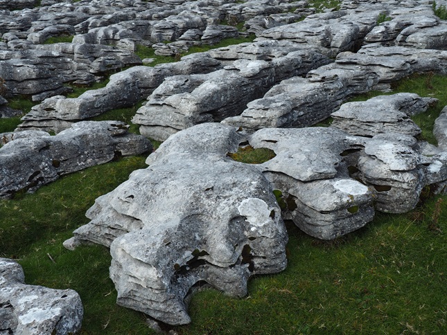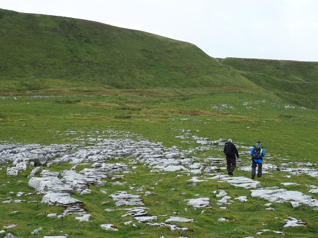 After this exciting little interlude we then enjoyed a gradual climb on to and across the limestone pastures of Angerholme Wolds. This section of the walk featured a number of interesting features including some nice patches of limestone pavement, some scattered erratic boulders and the line of pot holes called Angerholme Pots, a number of which were fenced off. We also encountered a half dozen or so fell ponies which is always a delight.