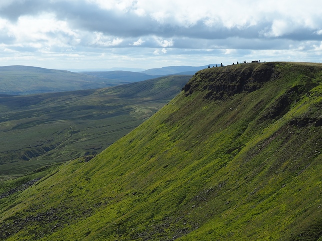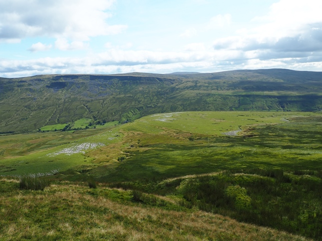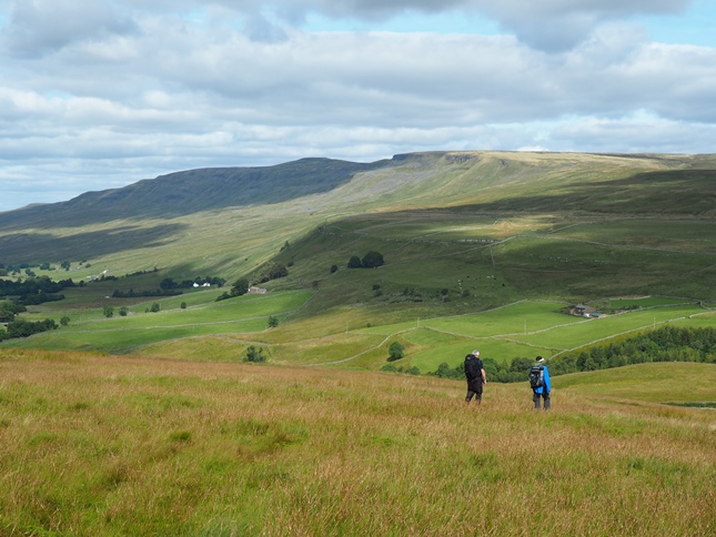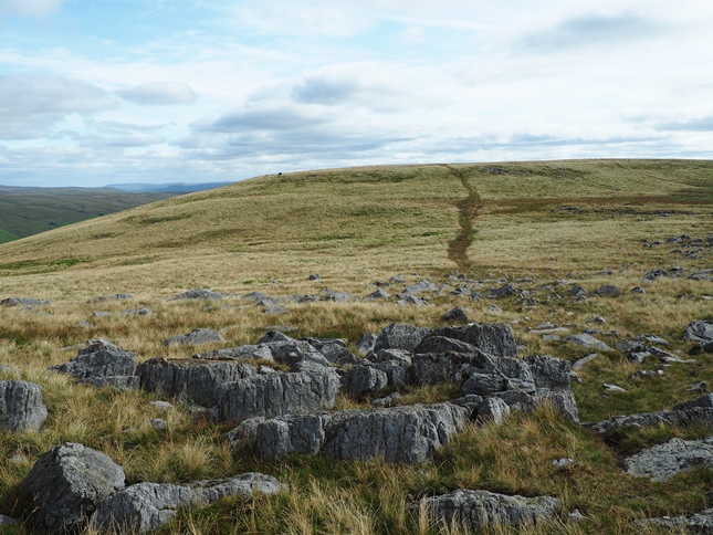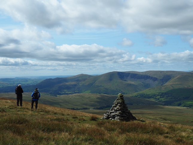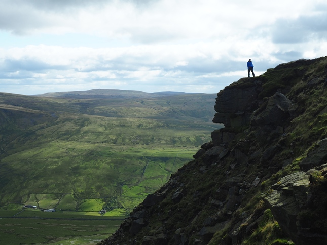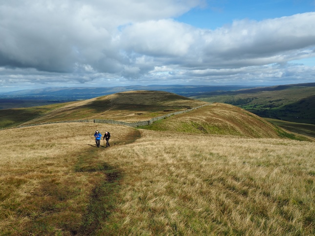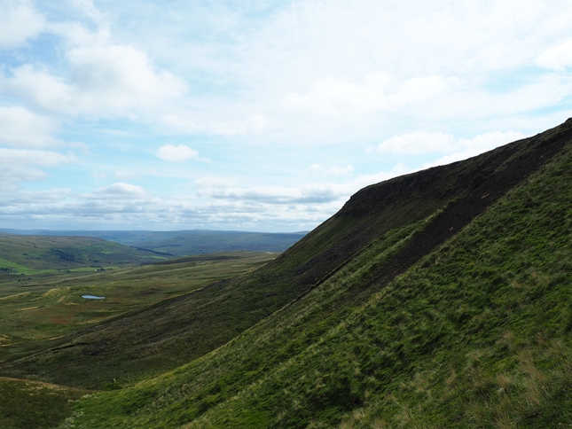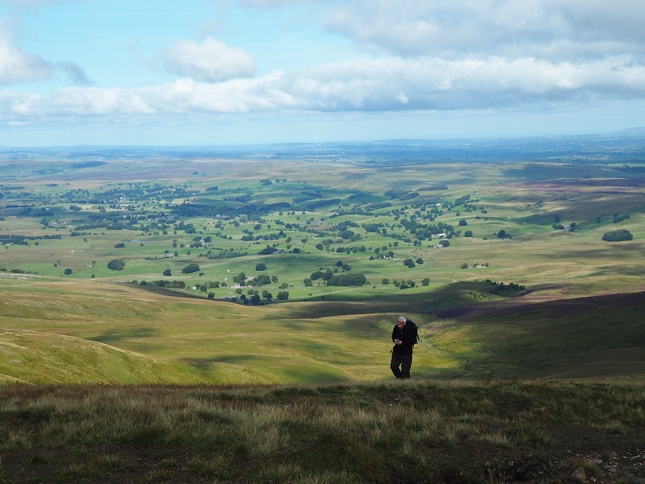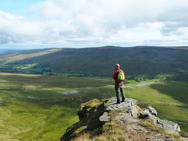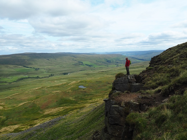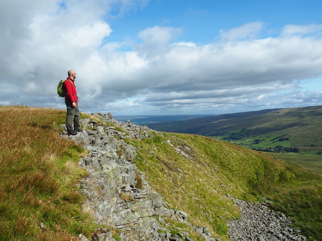 Having climbed up to High Dolphinsty we were suddenly greeted by a fantastic panorama of hills and fells to the west with a long line of Lakeland summits beyond the nearby Howgill Fells. Turning south we then commenced a grand climb up to Wild Boar Fell's Nab from where we enjoyed a breathtaking view down into Mallerstang from the exposed outcrop.