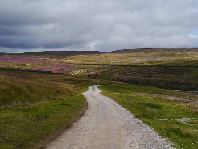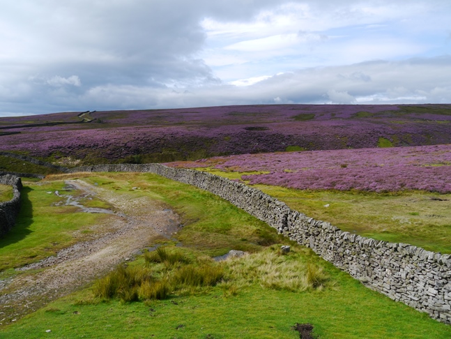 The moor surrounding the trig point was covered in swathes of beautiful purple heather though sadly at this point the sun was stubbornly refusing to break out over us. It did finally begin to break however a short while later as we made our way on to Grassington Moor via Old Moor Lane for a short loop around the mines which included the obligatory visit to the magnificent chimney and flue.