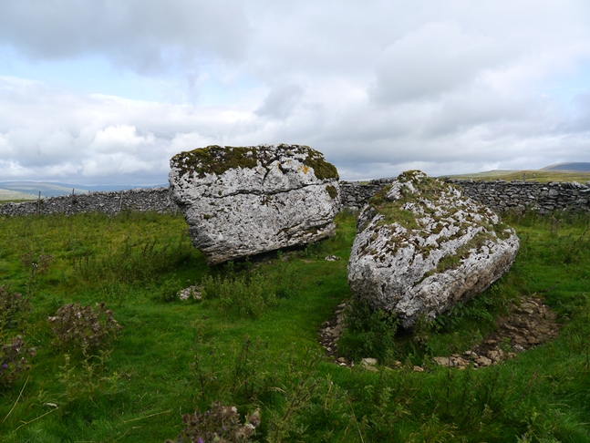 Once we'd backtracked and were back on route we crossed another couple of pastures, including one that contained a sizeable number of cows, passed a pair of prominent limestone boulders and arrived on Bare House Lane. Here the views opened up to the north towards Capplestone Gate and Great Whernside. Turning south-east along Bare House Lane we then made a short detour to the trig point on New Pasture Edge. I found it quite amusing to think of my first visit to this trig point nine years ago, before the introduction of access land, when I had very tentatively made my way to this trig point for fear that I'd be caught trespassing.