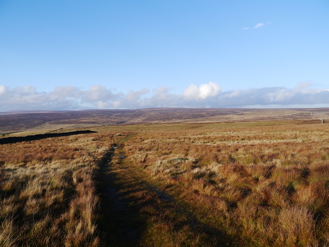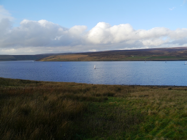 Gratefully leaving the imminent carnage behind us we crossed over the B6265 to take a fine old way leading to Grimwith Reservoir. The next half a mile or so saw a dramatic improvement in conditions. Upon reaching the reservoir car park the fog and murk had give way to lovely patches of sunlight travelling across the surrounding moorland. By the time we left the reservoir for the climb up to Nursery Knot there was barely a cloud left in the sky.