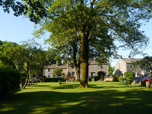 An enjoyable grass path through the bracken below Cow Close Wood eventually brought me to the caravan and camping site at Wood Nook. Passing through the campsite and down the access road it was then an easy walk back to Threshfield along the road passing the houses at Skirethorns with their attractive green.