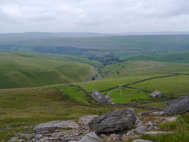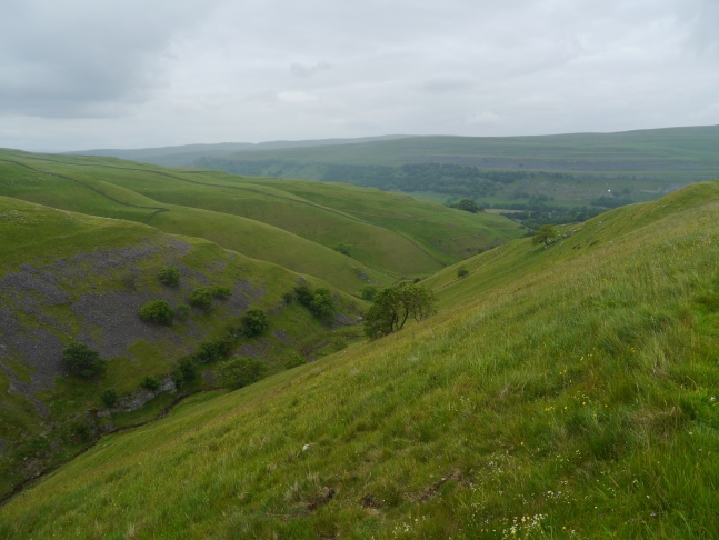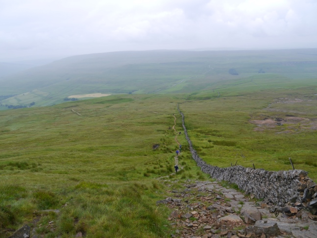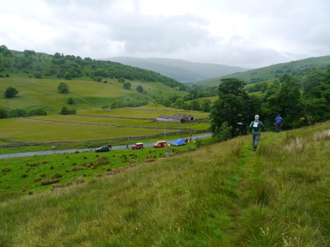 The descent from Buckden Pike to the next check-in point at Little Hunters Sleets was quite a gentle one and it gave my right leg a bit of recovery time. However, almost as soon as I started the steep slanting climb below Black Dike End the pain in my right knee came back and remained with me for the rest of the walk. Once I reached the top of Great Whernside I knew it was then only a shortish walk back to Kettlewell and indeed the descent via Hooksbank is one of my favourites in the Dales.